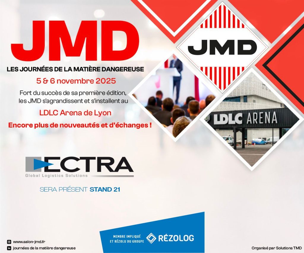 Les 5 et 6 novembre 2025, les Journées de la Matière Dangereuse (JMD) réuniront à la LDLC Arena de Lyon les principaux acteurs du transport, de la logistique et de la gestion des produits dangereux. Cet événement incontournable est l’occasion d’échanger sur les enjeux de sécurité, de conformité et d’innovation au sein d’un secteur en constante évolution.